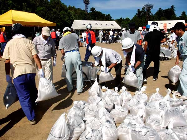 土のうつくり・運搬訓練