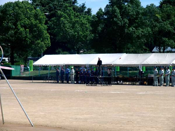 炎天下、各テントの中にて閉会式