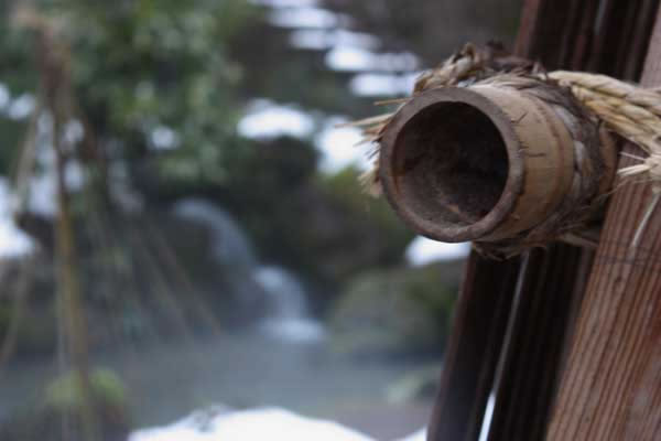 雪囲いを支える竹
