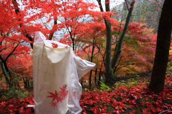 和紙のもみじ絵もまわりに溶け込んで