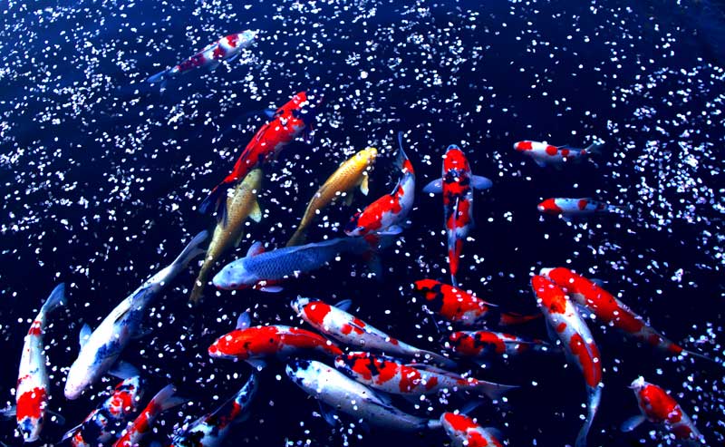 鯉が池の桜の花びらを食べるかもと真面目に見ている方も、さてどうなんでしょうか