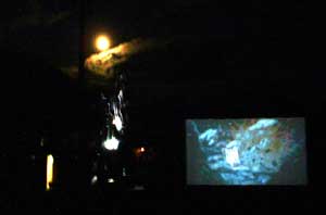 満月も顔を出して映写機、スクリーンとの対比は圧巻でした。