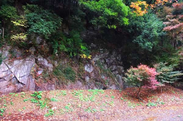 岩清水に似た岩肌が迫力、大きな山鳥と出会い驚く(どちらが?)