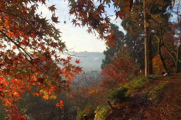 紅葉の間から見える町並がいい