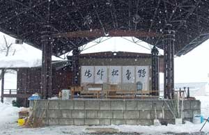 前日、花筐会館、みなさんの前で書いた私の書、能舞台ステージに