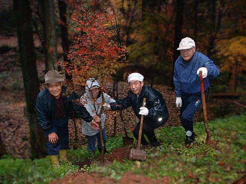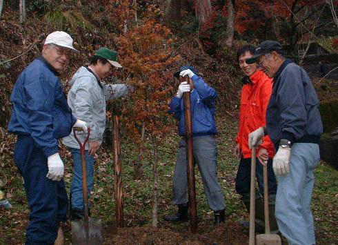 実は 私は植樹は始めてのことでしたが プロ級の腕前の方達が大勢いて いろいろ教わることができました。やはり 年の功と経験です。